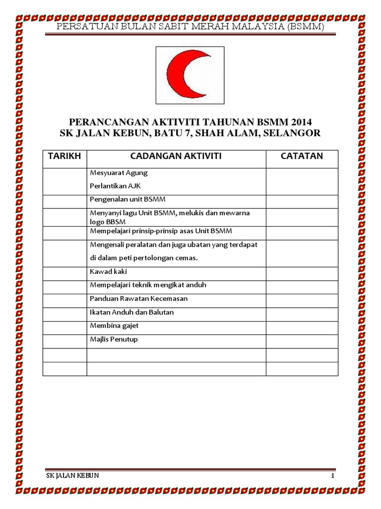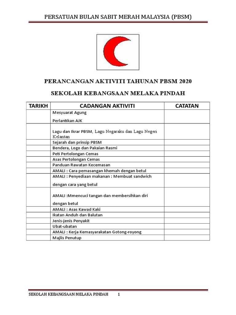 Rancangan Aktiviti Tahunan Persatuan Bulan Sabit Merah 2017 Pdf